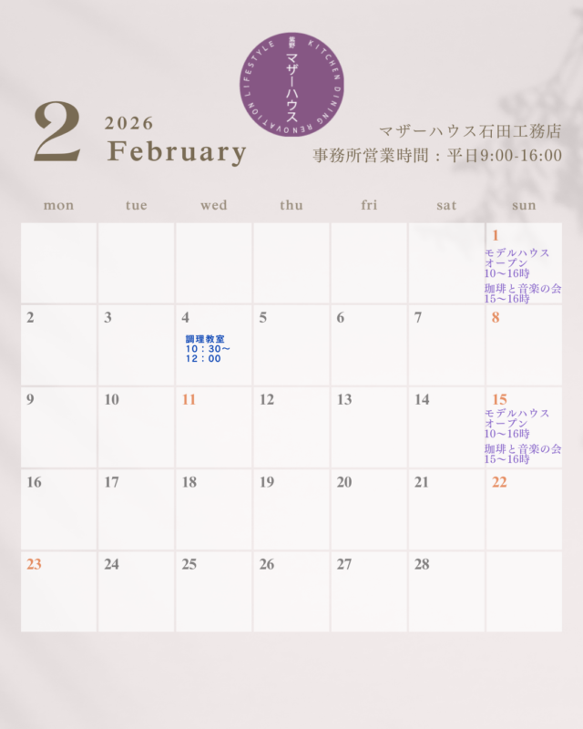 2026年2月カレンダー モデルハウス「紫野マザーハウス」でのイベント