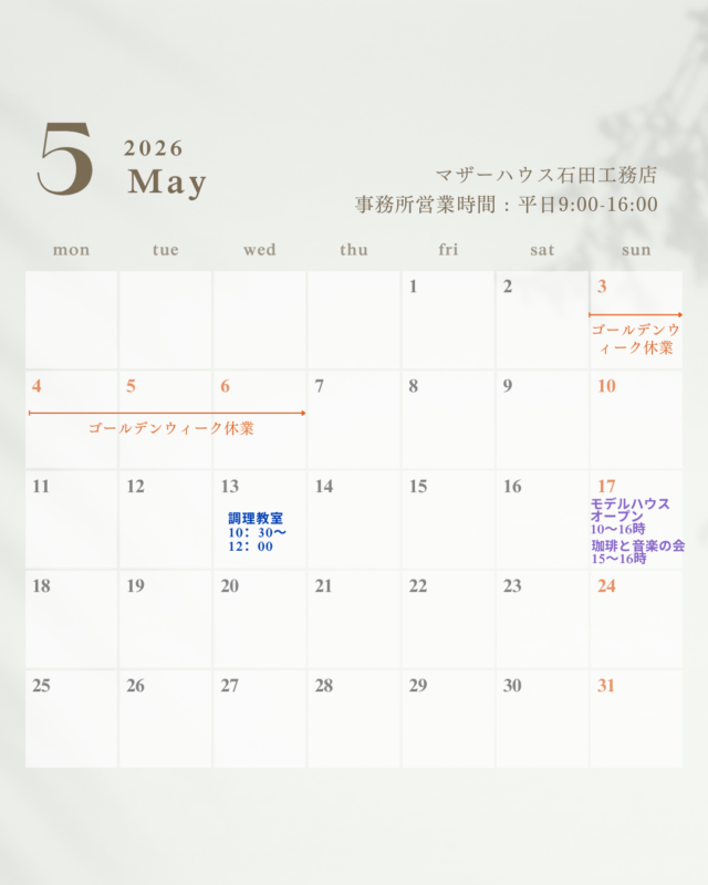2026年5月カレンダー モデルハウス「紫野マザーハウス」でのイベント
