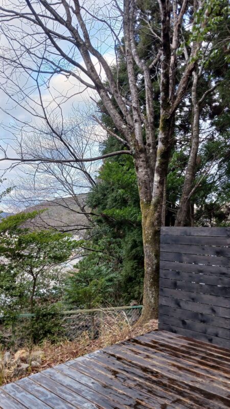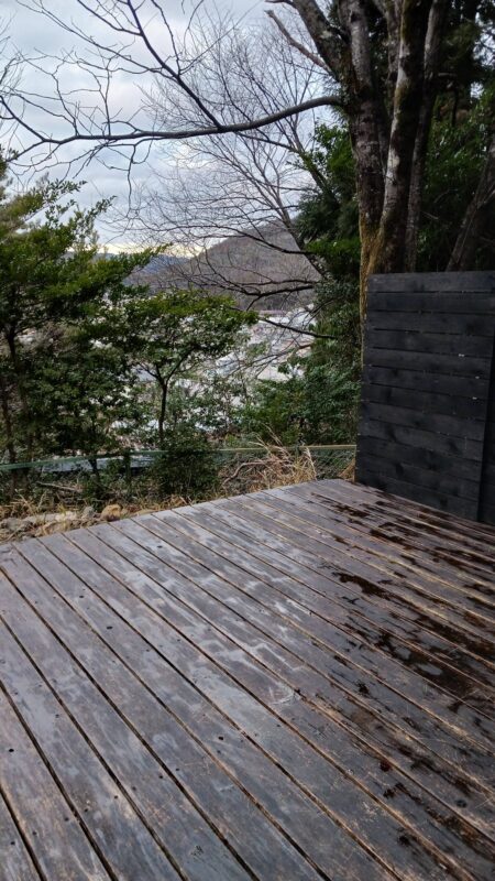 北区原谷にある作業場の裏山のデッキの塗装ができました。