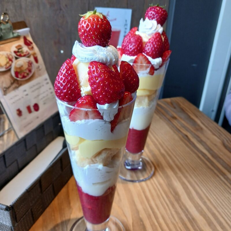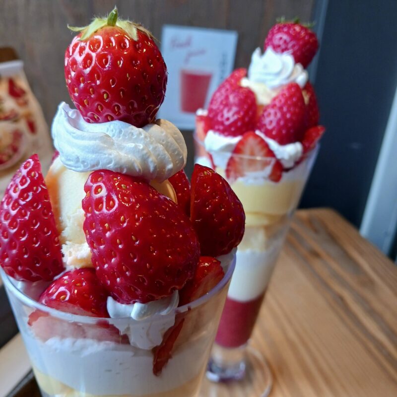 上賀茂佐右衛門カフェの苺パフェを食べに行きました。