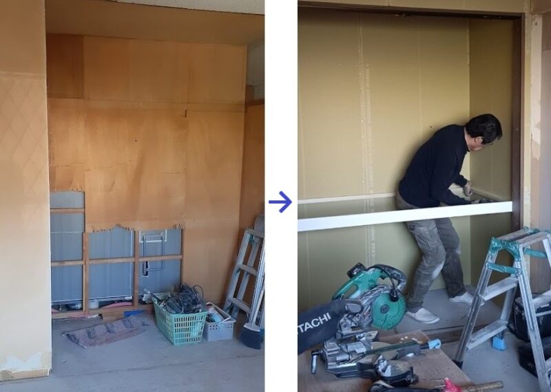 そして、こちらのお部屋のいちばんの改装は、古い押入・天袋をすべて解体し、新しいクローゼットに生まれ変わらせること。