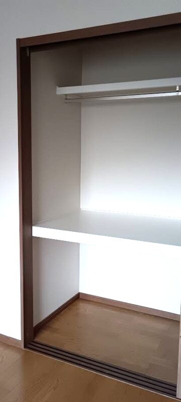 押入と天袋の間にある仕切りも撤去して、新たにホワイト色の枕棚・ハンガーパイプと中段を設置。