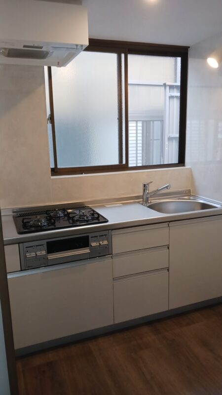 二階のキッチンも色を基調にシンプルに仕上げているので、コンパクトながら広々感じられる空間となりました。