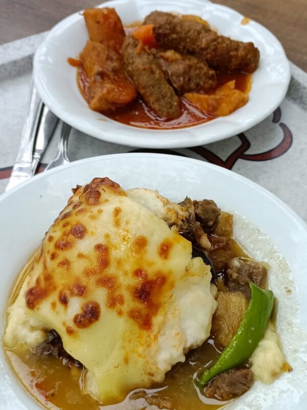 こちらはムサカ。野菜とお肉の煮込みとホワイトソースを重ねて焼いたもの。