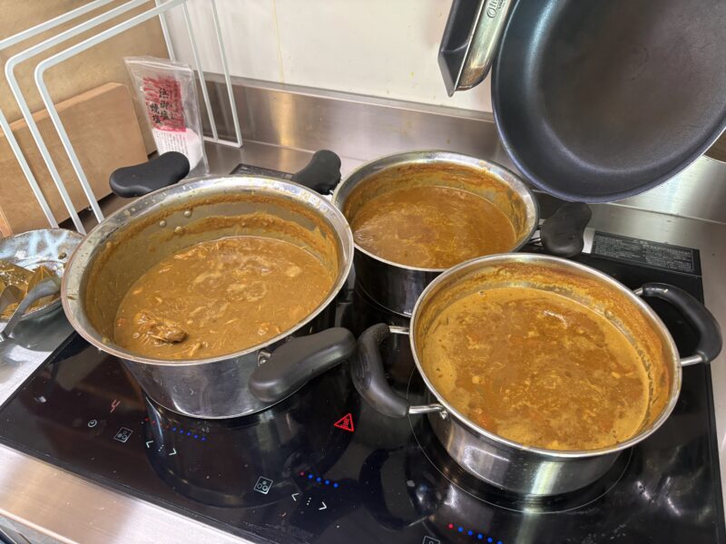大きなお鍋3つ、調理研究科の石田が心を込めて作りました。